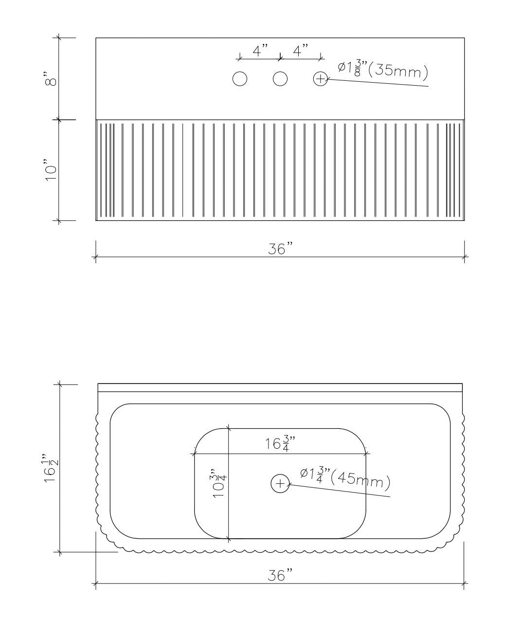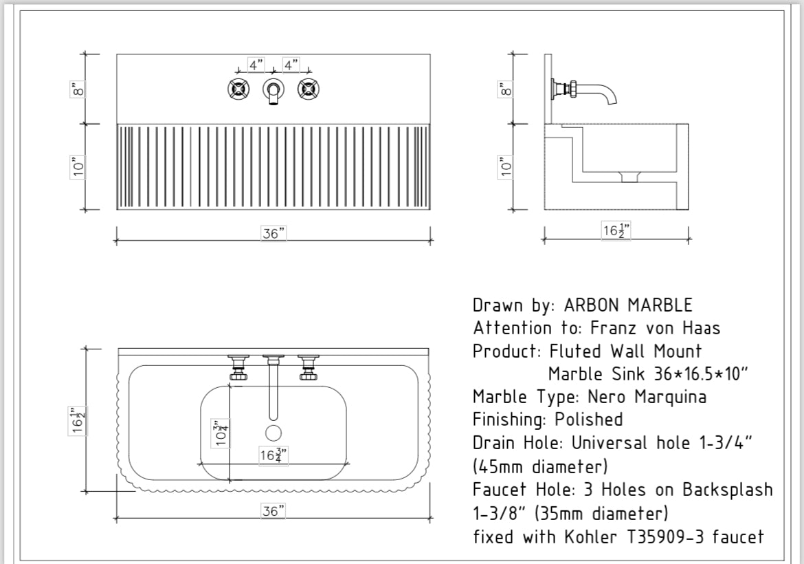 36 x 16 1/2 x 10" Nero Marquina Fluted Sink