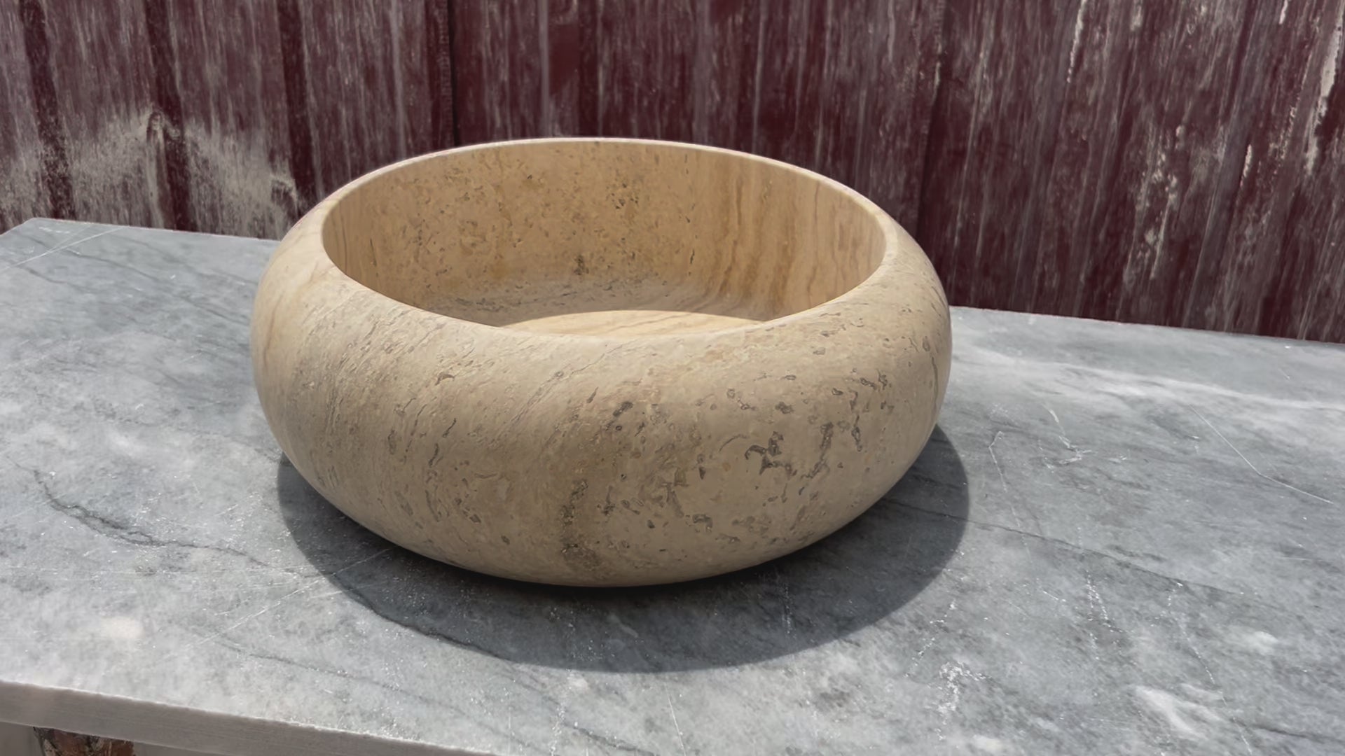 Introducing the Beige Travertine Vessel Sink, a beautiful hand carved masterpiece to any bathroom. This round shape washbasin adds a touch of elegance to your bathroom and is perfect for any bathroom vanity top.